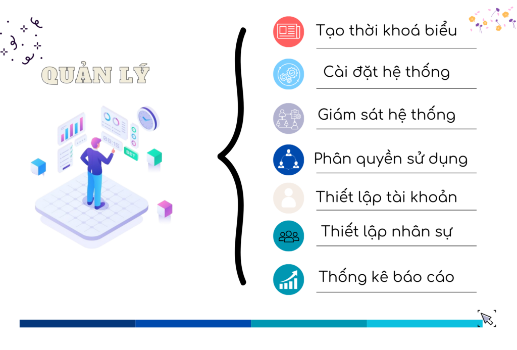 - Theo dõi, giám sát giáo viên, học sinh và nhân sự