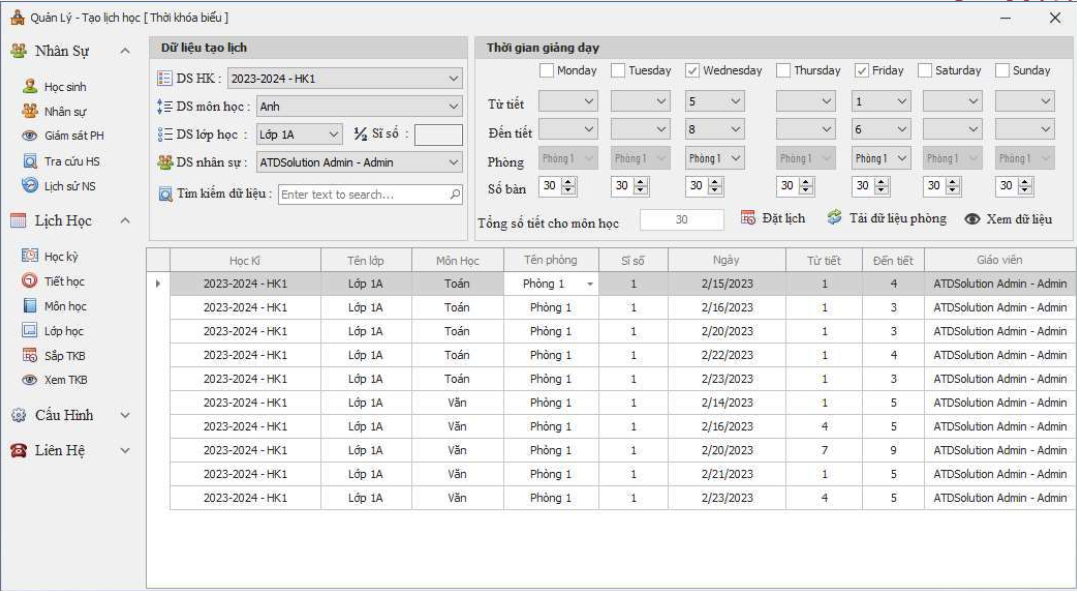 - Tạo thời khóa biểu.